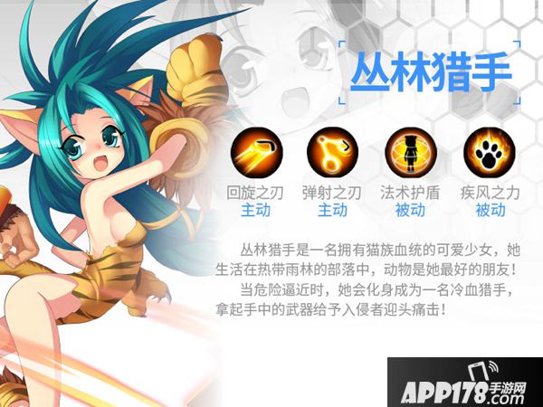 背景:丛林猎手是一名拥有猫族血统的可爱少女,她生活在热带雨林的部落中,动物是她最好的朋友!