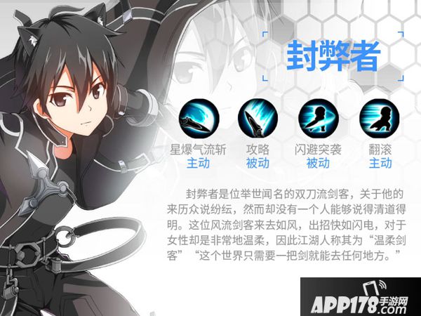 背景:封弊者是位举世闻名的双刀流剑客,关于他的来历众说纷纭,然而却没有一个人能够说得清道得明。这位风流剑客来去如风,出招快如闪电,对于女性却是非常地温柔,因此江湖人称其为“温柔剑客”“这个世界只需要一把剑就能去任何地方。”