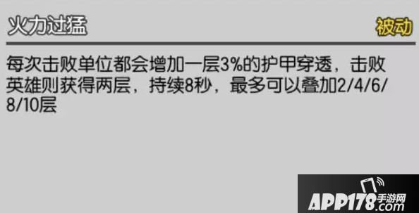 增强对线能力和对抗坦克的被动,杀死单位才能触发,利用这个被动需要推线,然后打一波小号,逐步建立对线优势。