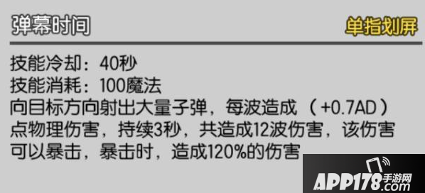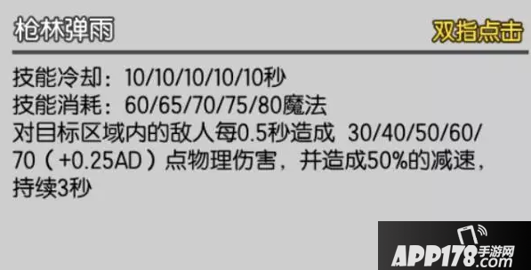 大范围扇形aoe持续物理伤害技能,可以暴击,团战最强输出技能,但是也很容易被打断,需要注意释放时机。(小技巧:1技能的减速可以辅助4技能打出更多伤害,配合使用击杀率更高)