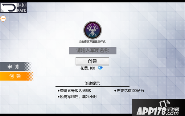 1.军团创建者必须要达到6级以上才可以创立军团,创立军团会花费100钻石