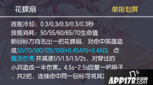 ①:如何在对线期间稳定禁锢到目标(3S内命中两发扇子)? 1.一定要选择敌人在补兵的时候使用扇子,因为敌人这时候是不移动的,专心注意力在小兵上,这时候的扇子是最容易命中。2.当扇子丢空时,不要急着丢下一发扇子,因为还是很容易丢空,下一发即使命中了,也没有后续的扇子补充了,就无法禁锢目标了。所以最正确的做法应该是:在扇子丢空之后,等扇子补充,等到扇子有两把之后,在考虑下一轮;当扇子命中之后,敌人会减速,之后走近并逼迫敌方撤退,在这一减速的1S内拉进距离保证下一发的释放距离,敌人就会被稳定禁锢在原地。如此反反复复的消耗和控制,敌人很容易在对线期被压制的很惨。
