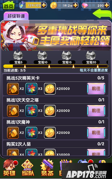 在“超级特训”宝箱里,可都是游戏顶级SSS英雄的碎片!而且越靠后的宝箱,碎片奖励越多!