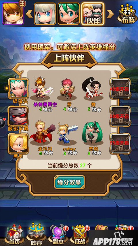 前期多余的英雄,若与上阵英雄有较多缘分羁绊,建议先不分解该英雄。30级后会逐渐开启援军(伙伴)空位,援军不会上场攻击,但可以激活上阵英雄缘分。