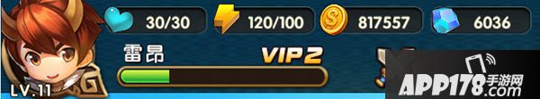 最上方从左到右依次为玩家的精力、体力、金币、钻石,绿色条展示玩家当前的经验,右侧为玩家目前的战斗力。