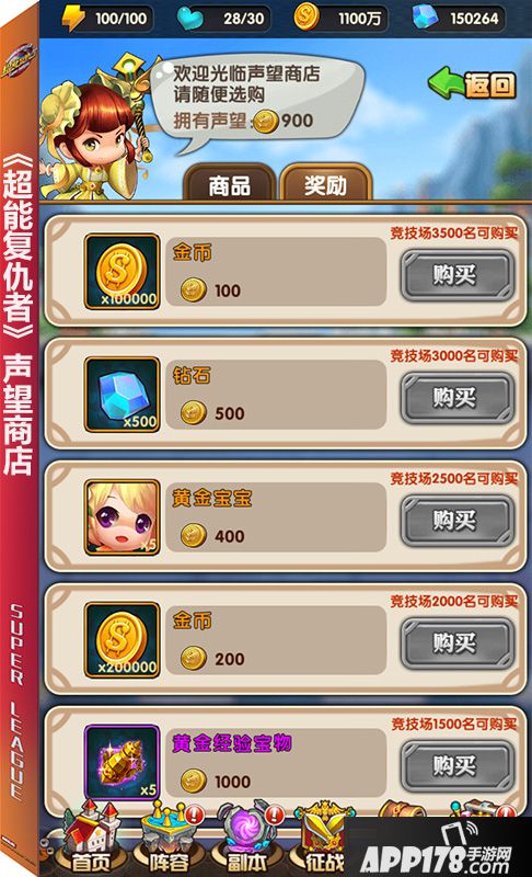 除此之外,每场战斗还能获得声望,玩家可以凭借累计的声望在声望商店中兑换培养道具、橙色英雄碎片等多种道具。