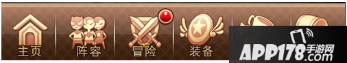 常用功能显示在游戏主界面的下方,。这些常用功能包括主页,阵容,冒险,装备,探索,商城。