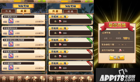 有上传头像、觉醒英雄、英雄升星、获得某等阶的英雄、通关普通关卡、决斗、夺宝、好友、结婚等等(共有多少钻石没统计过)