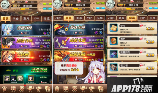 游戏中钻石的只要支出就是抽取英雄和装备了,建议玩家先抽1到2次英雄10连将需要的英雄抽出(不一定非要s级,B级A级都可以),然后开始抽装备(装备的加成远大于s卡的加成,10连必出一件s装和随机出现数件紫装整件或者碎片),至少抽齐6套紫装之后再回来抽英雄!(ps:英雄单抽300钻,10连2800钻;装备单抽500钻,10连4500钻。英雄和装备首抽必出S级)。