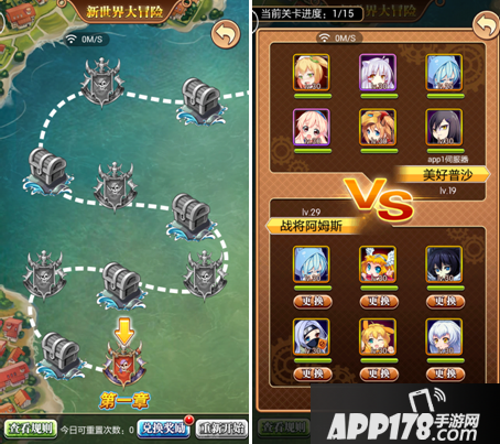 当我们的女皇们千锤百炼终于达到26级后,新世界的大门随即开启!点击进入新世界,玩家便可开启6 VS 6的对战界面,此处可以看到显玩家自己和对手的详细阵容图哦。
