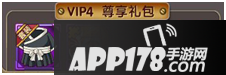 VIP4 累计充值500钻石后可享受该特权。包含VIP3及以上特权。体力购买次数5,金币购买次数50。黄金宝箱购买次数40。副本重置次数4。竞技场挑战购买次数+2。每日可领取35张扫荡卷。每日可购买军团副本次数1次。国战屯兵上限160人