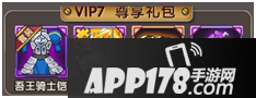 VIP7 累计充值4000钻石后可享受该特权。包含VIP6及以上特权体力购买次数9,金币购买次数110黄金宝箱购买次数70副本重置次数7竞技场挑战购买次数+5每日可领取50张扫荡卷每日可购买军团副本次数2次国战屯兵上限220人