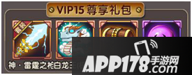 VIP15 累计充值200000钻石后可享受该特权。包含VIP14及以上特权体力购买次数17,金币购买次数270黄金宝箱购买次数150副本重置次数15.竞技场挑战购买次数+13每日可领取90张扫荡卷每日可购买军团副本次数10次工厂升级,加速修理,缩短时间50%国战屯兵上限380人。