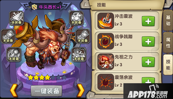 1.冲击震波:震击大地形成冲击波,依消除的方块连锁数量给予自身攻击力百分比的物理伤害;