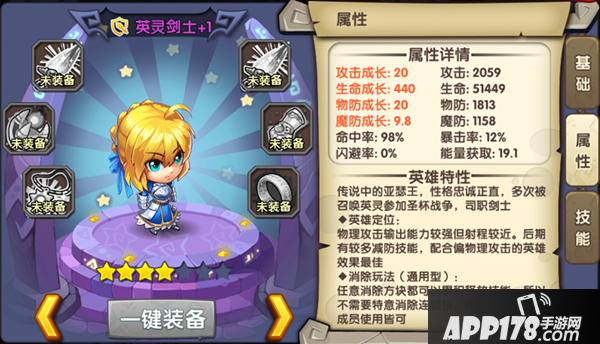 1.石中圣剑:召唤巨大的圣剑,依消除的方块连锁数量给予身前敌人自身攻击力百分比的物理伤害;