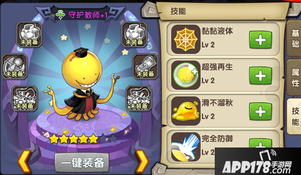 1.黏黏液体:老师为保护学生,牺牲自己百分比的生命,为全体队员增加自身攻击力百分比的护盾,持续10秒;
