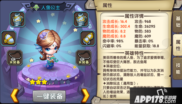 2.纯净水源:召唤海浪冲刷战场恢复我方全体自身攻击力一定百分比的生命值,并解除所有异常状态;