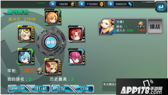 点击选择挑战的人,就可以进入挑战的布阵界面了,你必须要排好你的攻击阵容才可攻击