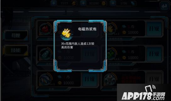 电磁热浆炮也是母舰初始就可以用的技能,当使用该技能时会对敌方指定地点投射一次强力电磁光柱,对一定范围内敌人造成1次较高的伤害,这个伤害值当然是随着技能等级的提升而不断提升的,因为他的伤害值较高,所以一定要好钢用在刀刃上哦!