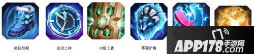 抵抗战靴+逆流之钟+治愈之盾+寒霜护盾+宇宙磁极+镭射核心