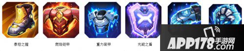 钢铁战靴+燃烧战甲+光能之盾+重力装甲+机械之心+蓄能腰带