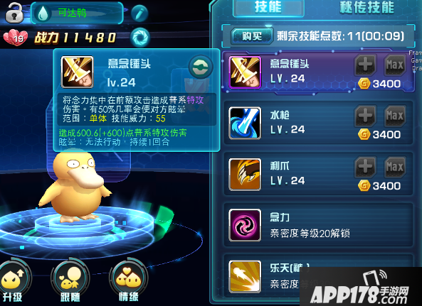哥达鸭虽然由于呆头呆脑的被不少玩家所嫌弃=。=。。不过用途可是非常之大哟~~其单体攻击非常强力,属性克制的情况下一招带走一只是常有的事,作为大招的意念拳头在释放后可以眩晕敌方怪物一回合。非常好用~~。