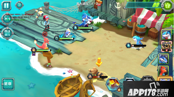 左上角的按钮就是常见的暂停按钮,加速战斗,和自动战斗。至于那个中间带问号的圆形按钮其实是属性相克表一栏