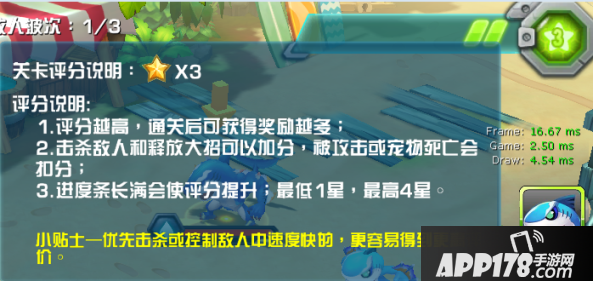 战斗界面的右上角为关卡评分槽。点击数字部分的区域可以看到评分相关的详细说明,因此就不多做额外介绍了。