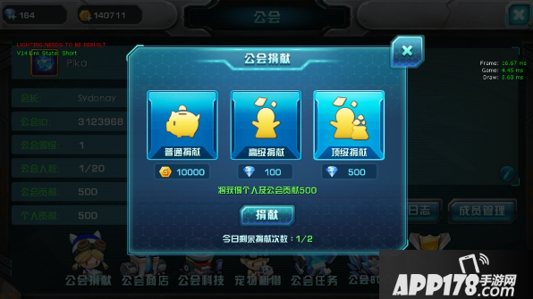 首先先介绍一下公会捐献,每天每位成员可以花费金币或钻石为公会捐献金币或者钻石换取贡献值。