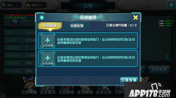 宠物租借可以出借自己的宠物给其他成员使用或者借用其他成员出借的宠物,金币收入会在宠物回归后获得,详细规则可以点击说明按钮查看。