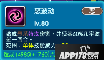 当亲密度达到十级的时候-恶波动:造成恶系特攻伤害,并使其60%几率眩晕一回合。属于单体技能,技能威力:75.