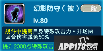 当亲密度达到三十级的时候-幻影防守:战斗中提高自身特殊攻击力。开场两回合伤害减免50%。属于被动技能。