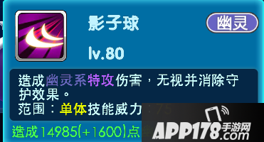 初始技能-影子球:造成幽灵系特攻伤害,无视并消除守护效果。属于单体技能,技能威力:75。