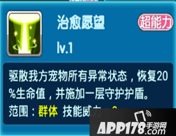 雪拉比【治疗愿望】驱散我方宠物所有异常状态,回复20%生命值,并施加一层守护护盾。【自然之恩】我方宠物被神奇的力量保卫,解除负面状态。并使不会陷入眩晕,麻痹,睡眠等控制状态中,每次造成伤害的100%转化为自身生命,持续2回合,冷却3回合。能够保证全体血量!
