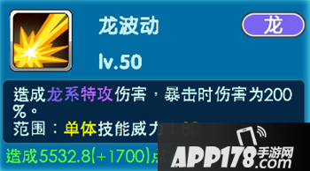当亲密度达到二十级的时候-龙波动:造成龙系物攻伤害,暴击时伤害为200%。属于单体技能,技能威力80。