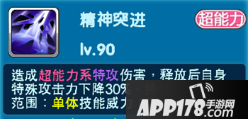 当亲密度达到五级的时候-精神突进:造成超能力系特攻伤害,释放后自身特殊攻击力下降30%,持续3回合。属于单体技能,技能威力250。