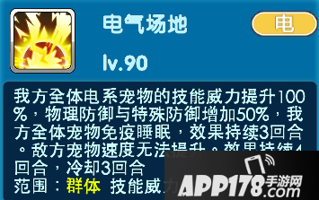 作为电系队长卡璞鸣鸣自然是首选!核心技能【电气场地】我方全体电系宠物的技能威力提升100%,物理防御与特殊防御增加50%。我方全体宠物免疫睡眠,敌方宠物速度无法提升,效果持续三回合。