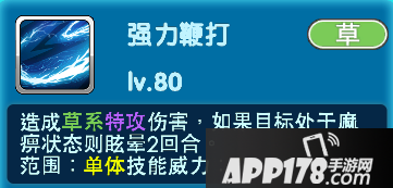 电束木的核心技能:起手先【雷电球】造成电系特攻伤害,并且麻痹3回合。重点就是在这麻痹效果上,当然在选择队友的时候也尽可能的带上能产生麻痹效果的宠物!如果敌方中麻痹效果后【狂舞挥打】会额外对敌人伤害增加50%。【强力鞭打】则能额外眩晕2回合!