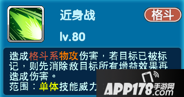 当亲密度达到二十级的时候-近身战:造成格斗系物攻伤害,若目标已被标记,则先消除敌目标所有增益效果再造成伤害。属于单体技能,技能威力75。