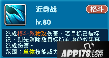 当亲密度达到二十级的时候-近身战:造成格斗系物攻伤害,若目标已被标记,则先消除敌目标所有增益效果再造成伤害。属于单体技能,技能威力75。
