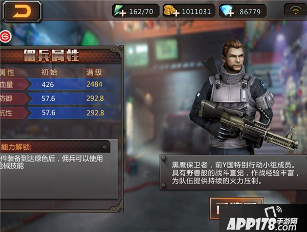 佣兵的升级需要使用佣兵经验卡,达到一定等级即可解锁佣兵使用武器技能的能力。