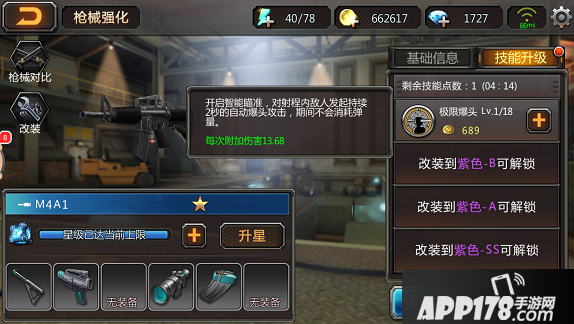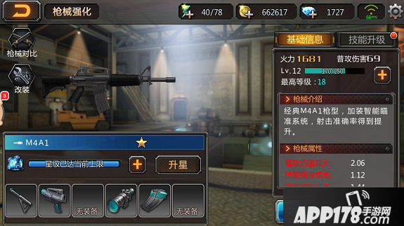 初始的M4A1是蓝色品质的枪械,但是通过枪械养成可以培养成SS级的终极枪械。达到规定的等级和突破次数后,就能用合金改装钳进行改装。改装后武器的各项属性会得到质的飞跃,同时也能解锁新技能。