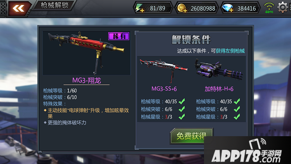 解锁条件是MG3系列和加特林系列的枪械等级达到35级,并且突破到+6级别,同时枪械星级达到3星水准