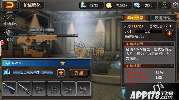 狙击枪是著名的AWM,这把狙击枪在各种游戏中被广泛引用,是众多狙击手的最爱。经典狙击枪AWM经过改造后,搭载了智能无人机,可以为狙击提供火力掩护。初始的AWM是蓝色品质的枪械,但是通过枪械养成可以培养成SS级的终极枪械。