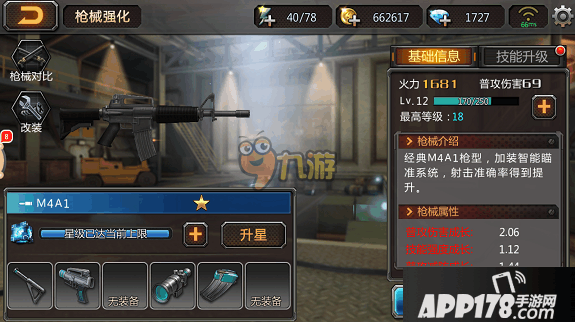 初级M4A1是蓝色品质的枪械,但是通过枪械养成可以培养成SS级的终极枪械。达到规定的等级和突破次数后,就能用合金改装钳进行改装。改装后武器的各项属性会得到质的飞跃,同时也能解锁新技能。