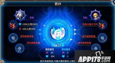 羁绊在23等开启,每个角色之间都能互将辅助增加能力,以白金为例