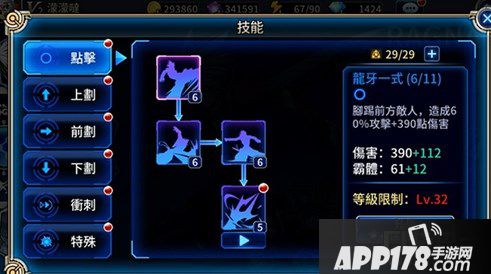其实该怎么提升技能取决于自己平常使用的角色比较惯用那些技能,举例来说,惯用拉格纳的↑→OOOO,则会特别把上滑的恶魔突刺以及点击的龙牙四式点高,如此一来可以省下不少的魔素,战斗也会又更好的表现!当然最一开始可以全部平均点,不过随者等级越来越高,需要的魔素和技能点也会越来越多,到时候势必是要做出先后取舍的技能。