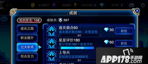 成就系统游戏中成就系统是获得宝石主要途径,每达成一个成就就可以获得相应数量的宝石,虽然看着不多,但是日积月累也是一个不小的数字。