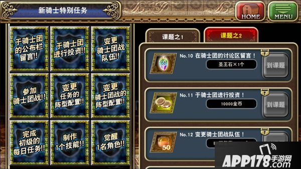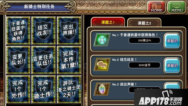 新手玩家在游戏前期经常会遇到两个难题,一是感觉到自己的卡牌不够强力,二是不知道应该做些什么。针对这一情况,我们为大家提供了【新骑士特别任务】