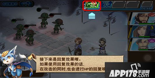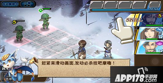 每个角色都有特定的必杀技,当必杀技计量条满时头像的左侧就会出现箭头,轻轻滑动屏幕就可以发动必杀技了。必杀技的发动和行动等待时间没有关系,可以随时发动o( ̄▽ ̄)d骑士们一定要把握好的时机,直接KO魔物,获得稀有材料。